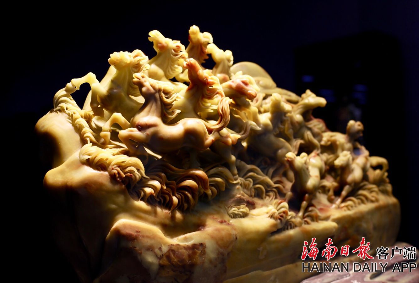 現(xiàn)場展出中國工藝美術(shù)大師麻雙鳴500余件玉石雕藝術(shù)作品,同時展出特邀中國工藝美術(shù)大師團(tuán)的古典家具、黃楊木雕、宜興紫砂、景德鎮(zhèn)陶瓷、青田石雕、壽山石雕、海南黃花梨家具等多個品類工藝美術(shù)藝術(shù)作品。 據(jù)海南日報客戶端|記者 陳若龍