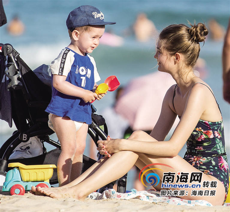 三亞大東海海灘,外國游客在沙灘上休閑。海南日報記者 武威 攝
