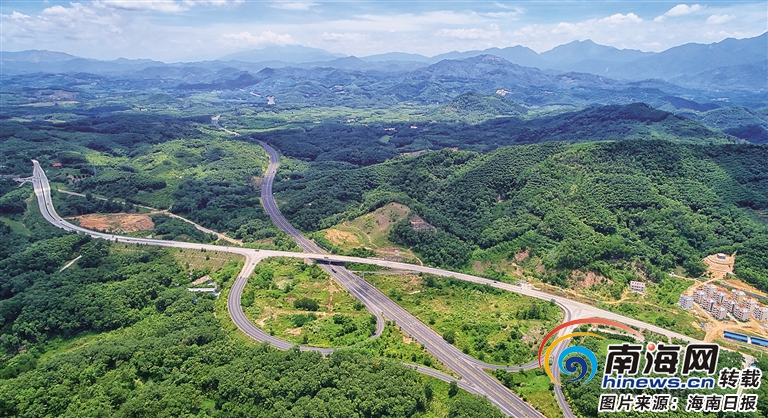 7月12日,俯瞰瓊樂高速與G224國道交界路段,嶄新的互通進出口連接瓊中黎族苗族自治縣。