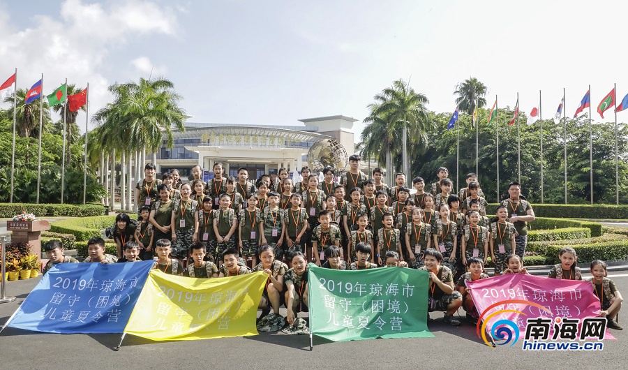 2019年瓊海市留守(困境)兒童夏令營參營小學員在博鰲亞洲論壇會址前合影留念。南海網記者 李昊 攝