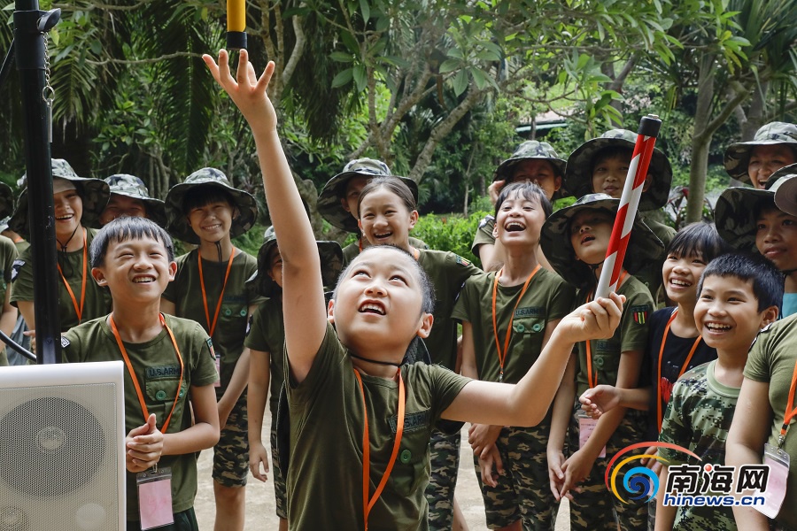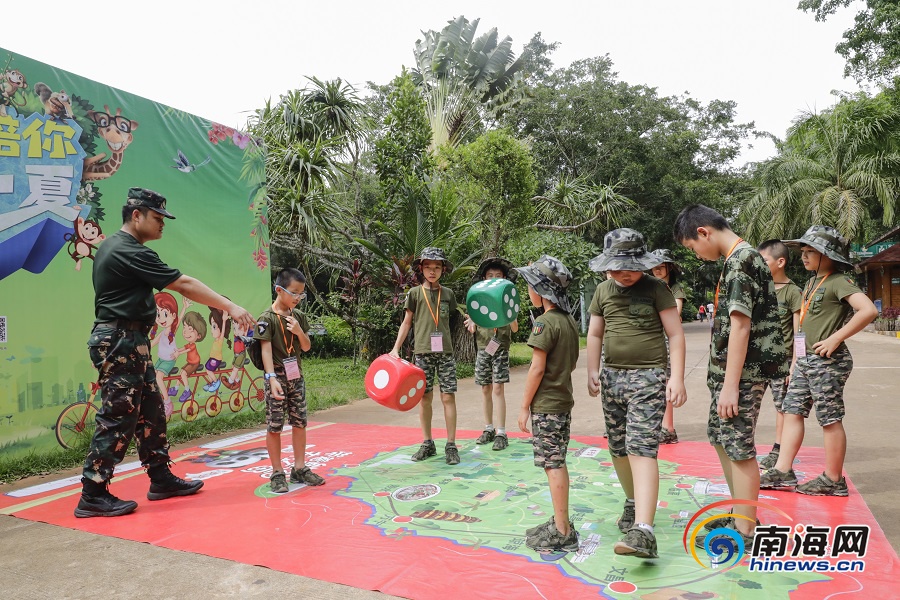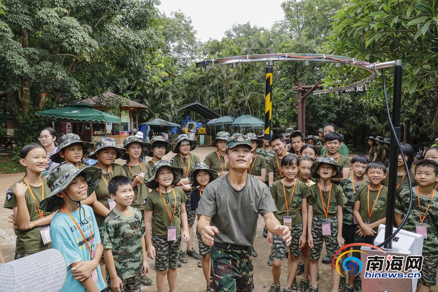 教官帶領(lǐng)瓊海留守(困境)兒童夏令營(yíng)營(yíng)員在海南熱帶野生動(dòng)植物園做游戲。南海網(wǎng)記者 李昊 攝