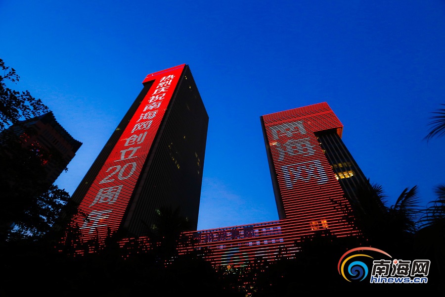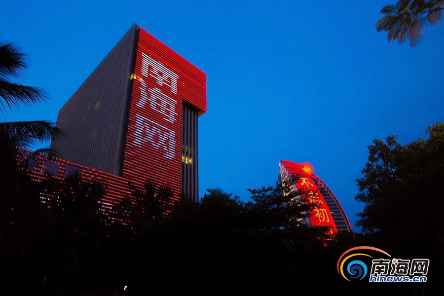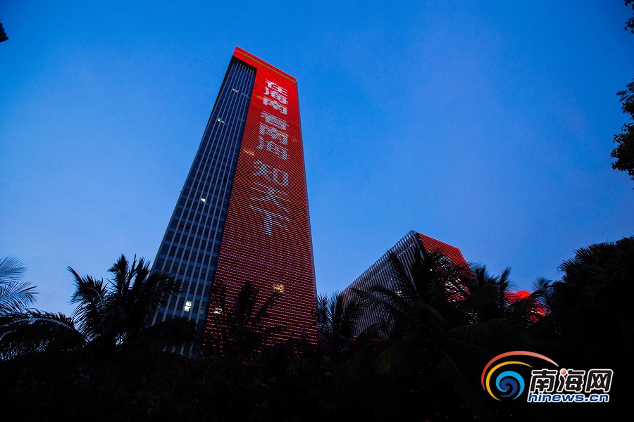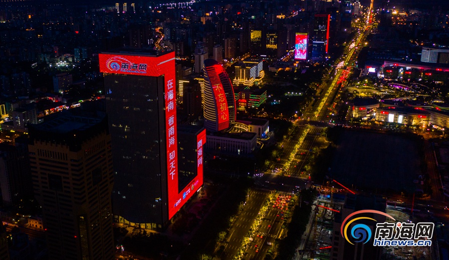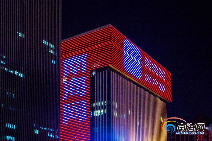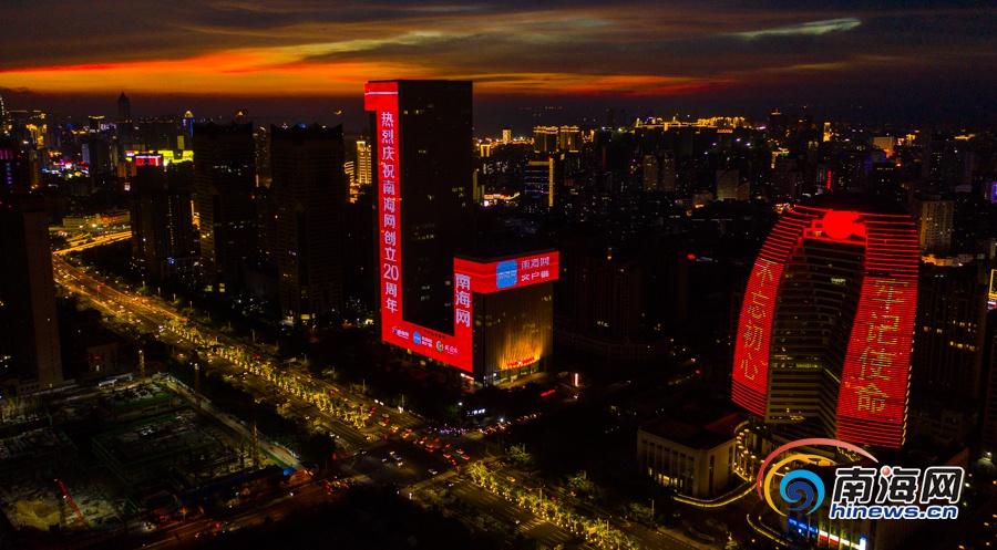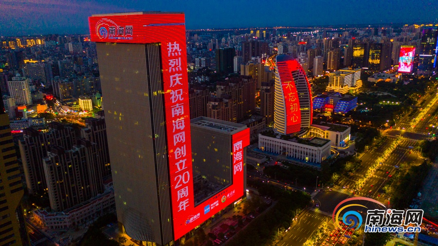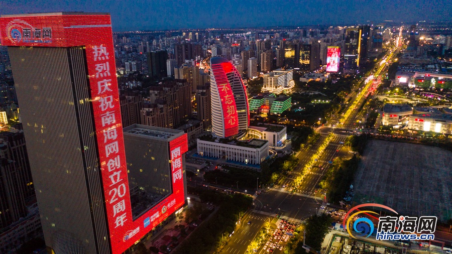 原創(chuàng)組圖 | 南海網(wǎng)創(chuàng)立20周年 海南大廈點(diǎn)亮祝福燈光