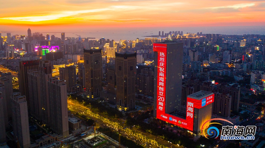 當(dāng)晚,“熱烈慶祝南海網(wǎng)創(chuàng)立20周年”“在海南 看南海 知天下”一個(gè)個(gè)耀眼的大字與海南大廈一同矗立在海口市核心區(qū)域國(guó)興大道上,猶如一座燈塔,照亮城市的夜空。