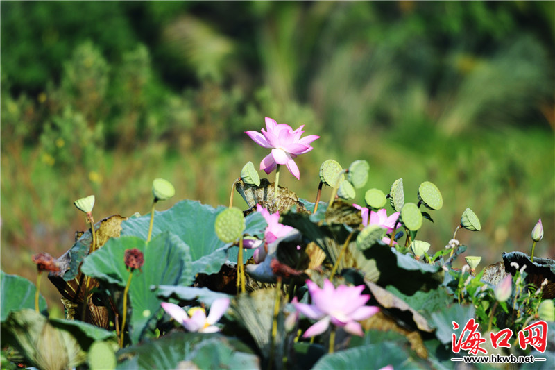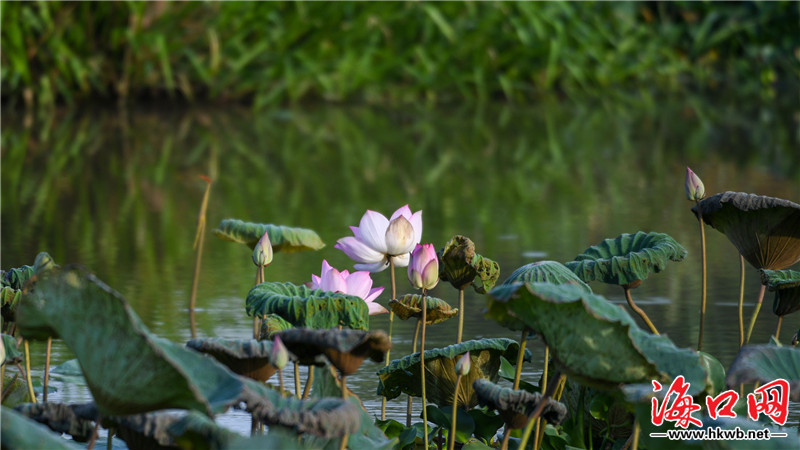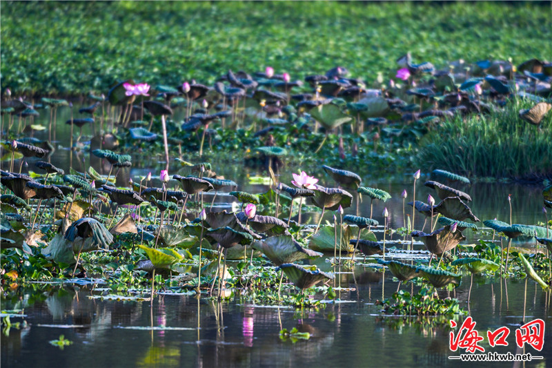 原標題:組圖|??谖逶春訃覞竦毓珗@荷花爭艷風光美