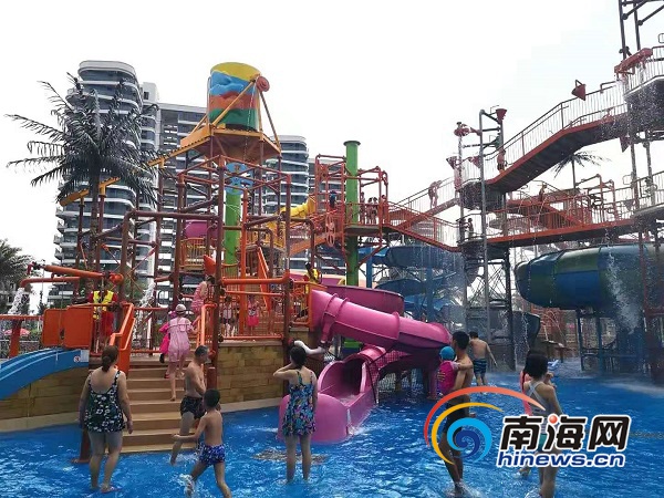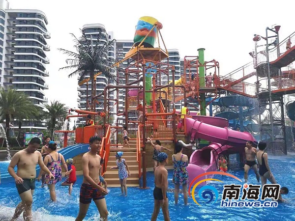 當(dāng)天,海口狂野水世界景區(qū)內(nèi)也是一片歡聲笑語(yǔ),游客及小朋友在游樂(lè)園中戲耍,享受夏日的清涼暢快。