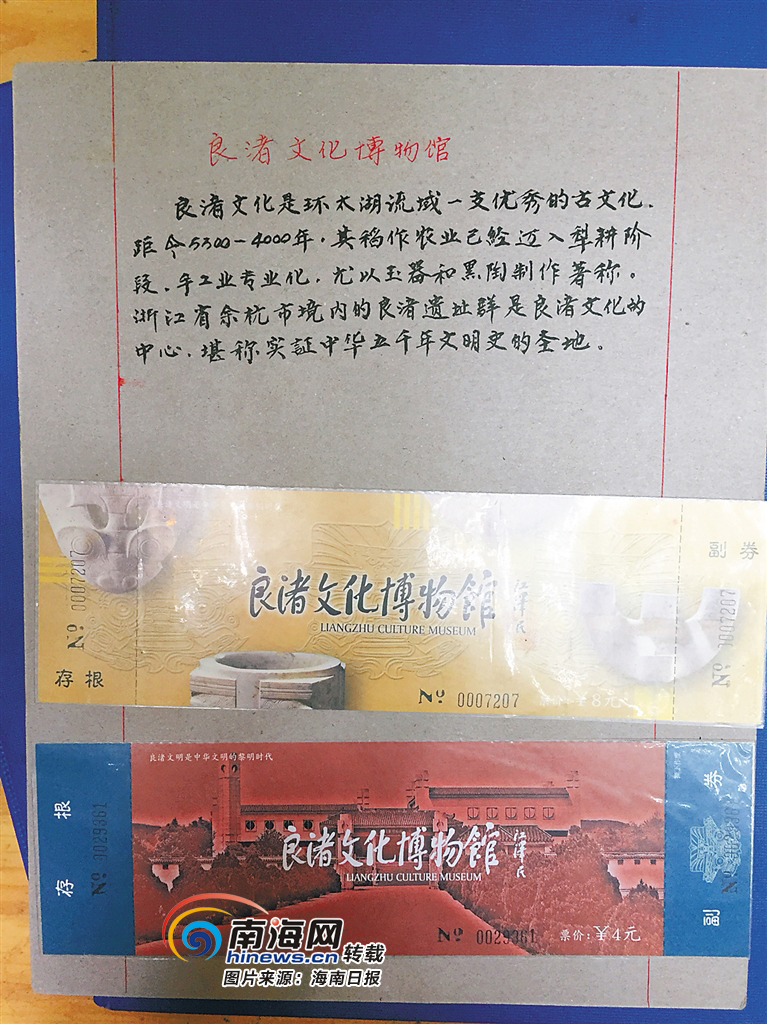 “你看,這就是今年7月份剛剛入選為世界文化遺產名錄的良渚古城遺址,現今我國已經有55處世界文化遺產了!”手里捧著兩張印有“良渚文化博物館”字樣的門票,柯錦華越瞅越歡喜。