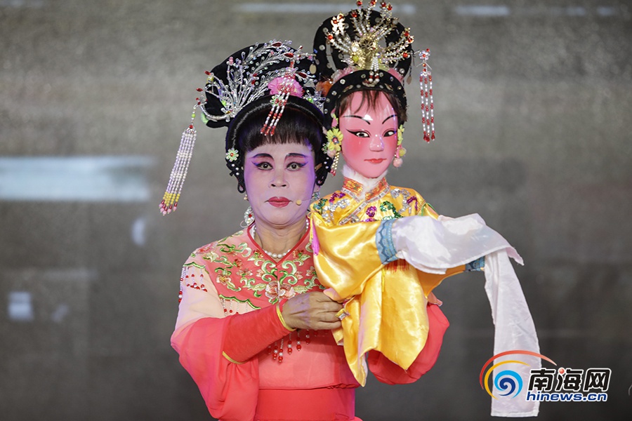 公仔戲《張文秀》之三姐偷包袱。南海網記者 李昊 攝