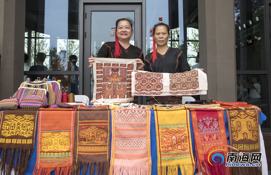 白沙黎族自治縣非遺傳承人展示黎錦。南海網記者 李昊 攝