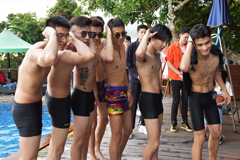 7月28日,2019第18屆精功(國際)模特大賽全國總決賽的選手們,在海南三亞亞龍灣熱帶天堂森林旅游區拍攝外景的情景。(黃慶優攝)