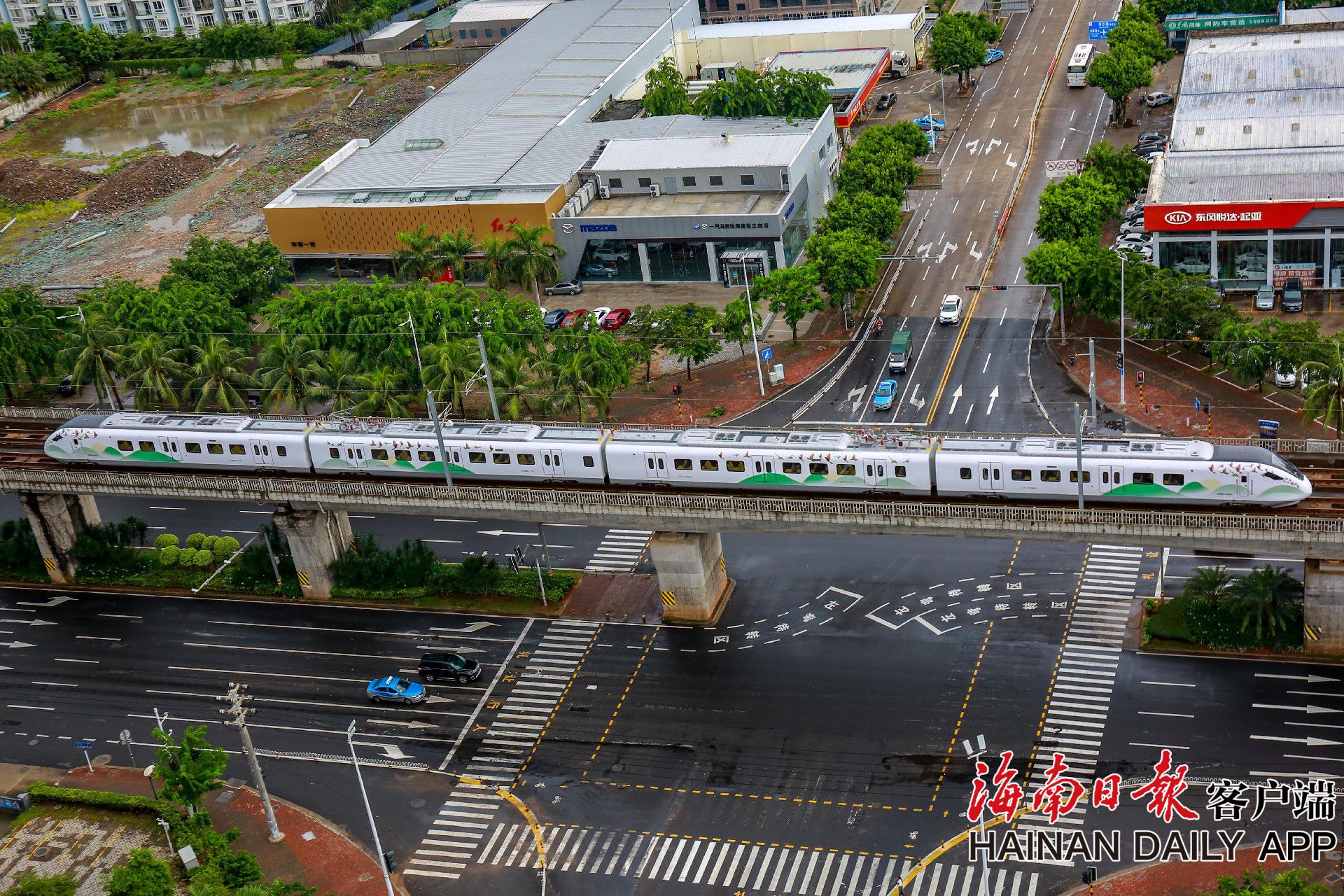 圖為列車在海口市南海大道上方往來穿梭。海南日報見習記者 李天平 攝