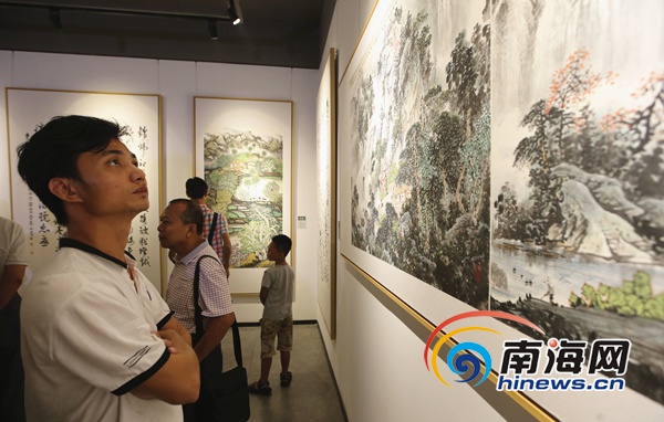 第三屆海南省書畫院書畫師作品展在海口展出,吸引市民前去觀展。 南海網記者 陳望 攝