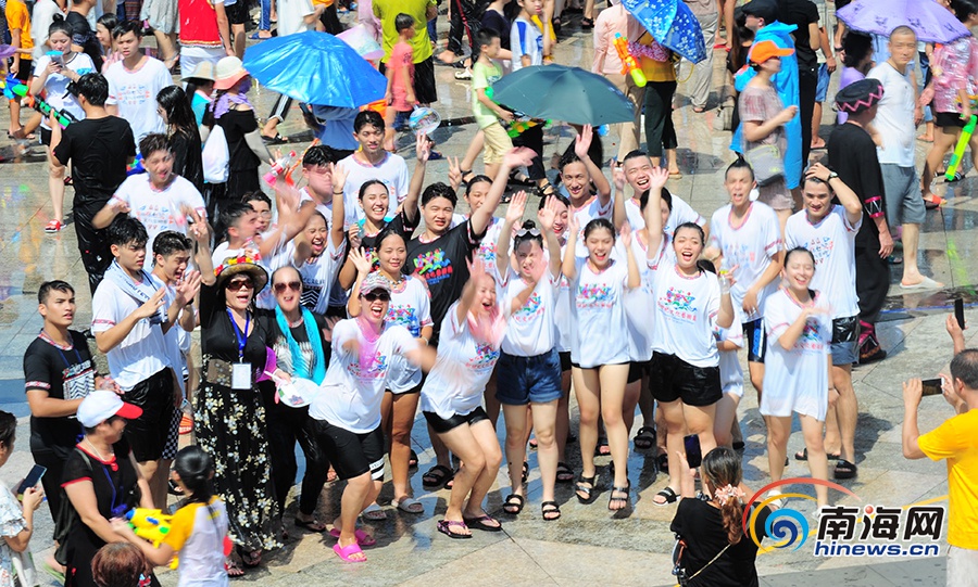 8月7日,眾多市民在保亭黎族苗族自治縣七仙廣場嬉水狂歡。南海網記者 沙曉峰 攝