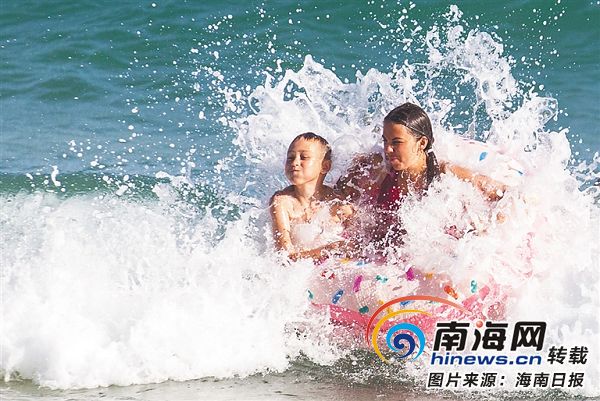 游客在三亞大東海嬉水。海南日報記者 武威 攝