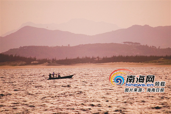 在陵水的疍家漁排品嘗當地特色海鮮是一種特別的經歷。當太陽漸漸在海平面消失,新村港變換了色彩,疍家漁排上點起了燈火,橘黃色的倒影讓海水更加多情。