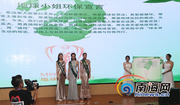 三名地球小姐進行環(huán)保宣言。南海網(wǎng)記者 陳望 攝