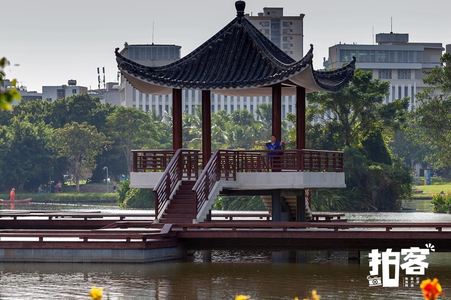 透過海口人民公園一角,看看市民的休閑生活。南海網客戶端專欄攝影師 李淘濤 攝