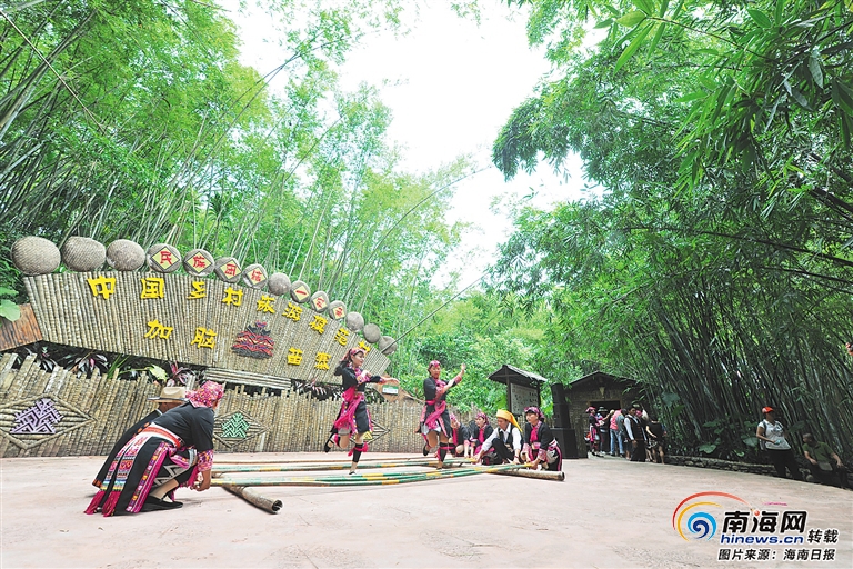 瓊海會山鎮加腦村憑借良好的生態環境和苗族特色文化,引來眾多游人。