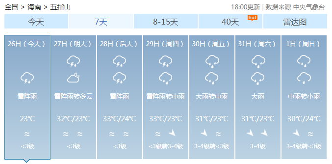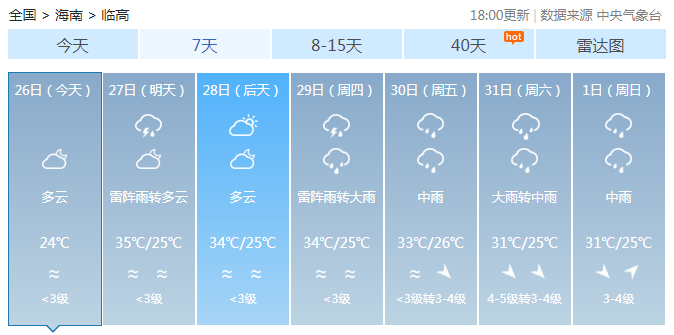 海南未來7天部分市縣的天氣情況