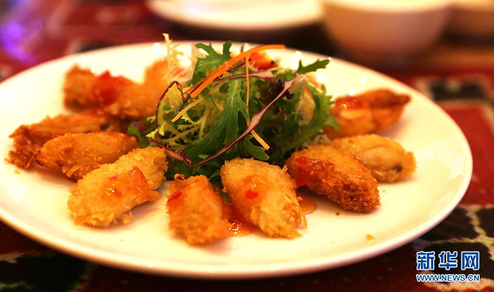 椰絲面包羅非魚片。新華網 黎多江 攝