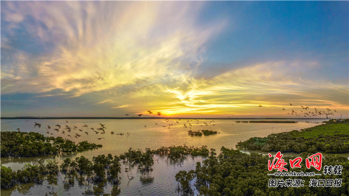 “貪看白鷺橫秋浦,不覺青林沒晚潮。”這是宋代大詩人蘇軾在《澄邁驛通潮閣二首》中對于紅樹林的描述。紅樹林是熱帶和亞熱帶潮間帶木本植物群落,在海南連綿不絕的海岸線上,紅樹林隨處可見。海陸之間,綠色充盈鋪排,群鳥起落其中,為我們演繹著歲月靜好,帶我們領略滄海桑田。