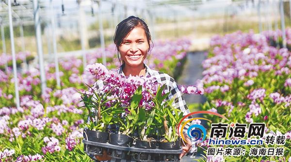 東方市迦南蘭花種植農民專業合作社積極吸納本地農戶發展蘭花產業,促農增收。本報記者 陳元才 特約記者 彭珊珊 攝