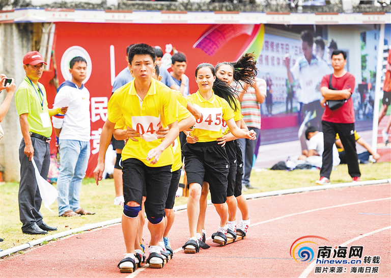 五指山少數(shù)民族高腳競(jìng)速項(xiàng)目比賽。