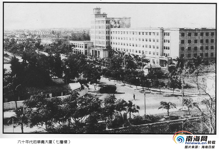 上世紀(jì)60年代的華僑大廈,是當(dāng)時海口的地標(biāo)性建筑,也是海口最高級的酒店。(本報(bào)資料圖片)