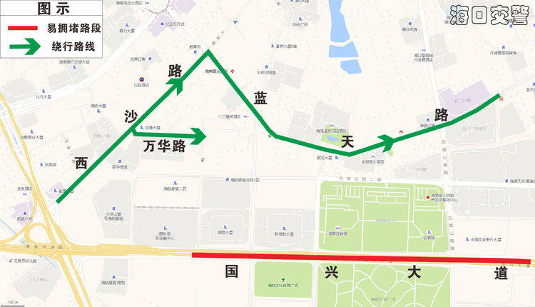 (二)適時管制路段:濱海大道(粵海大道至龍華路);玉蘭路、民生路、世貿北路、紅棉路等萬綠園西側路段;玉沙路、世貿東路、金貿中路、金貿西路、明珠路、國貿大道、金龍路等國貿區域路段;龍昆北路、世紀大橋、濱海立交橋、海甸五西路、人民大道、碧海大道、白沙門公園門前路段等。