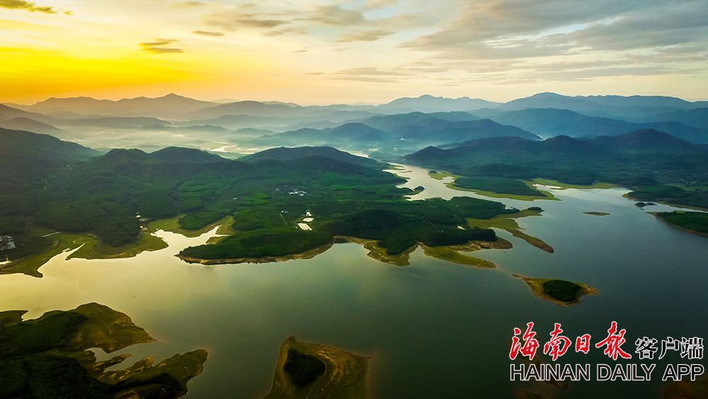 初升的太陽給昌江縣石碌水庫披上金暉。海南日報記者 蘇曉杰 攝