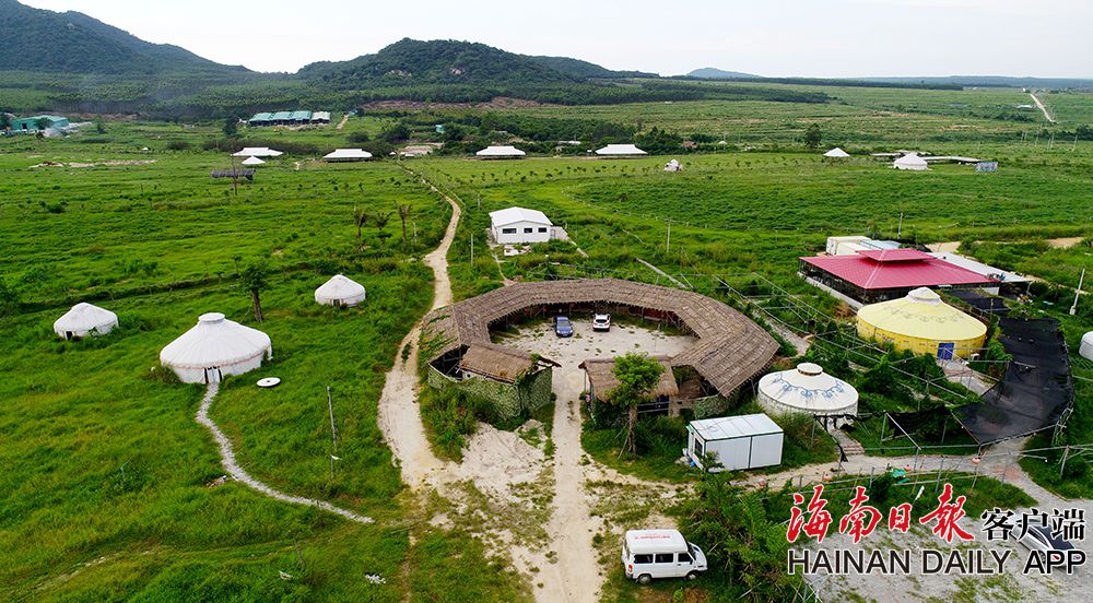 俯瞰昌江縣扶貧產業奶業基地哈薩克氈房裝點的牧場。海南日報記者 蘇曉杰 攝