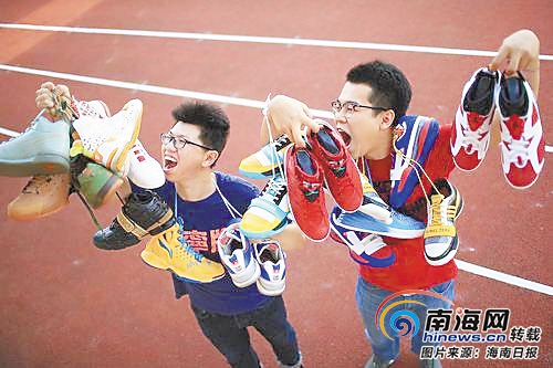 “愛鞋一族”在展示自己收藏的各種鞋子。 海南日報記者 張杰 攝