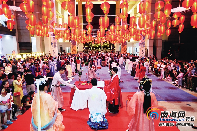 9月13日中秋佳節(jié)19時(shí)許,省博物館半空點(diǎn)綴著紅燈籠,穿著對襟襦裙、嫦娥仙子裝扮的美女,吸引了眾多市民游客參與當(dāng)晚的中秋之夜系列文化活動(dòng),而海南傳統(tǒng)特色小吃、傳統(tǒng)手工藝品等組成的古韻市集也令市民吃得盡興,賞得高雅。