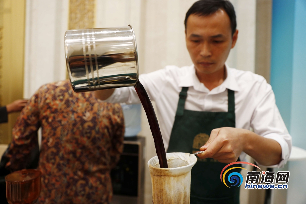 現場演示興隆華僑傳統風味咖啡沖泡。南海網記者 劉洋 攝