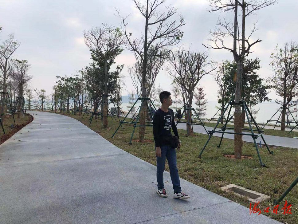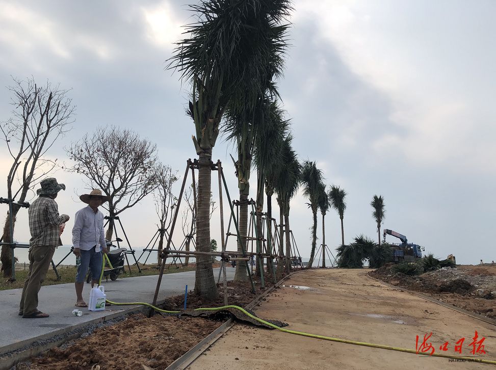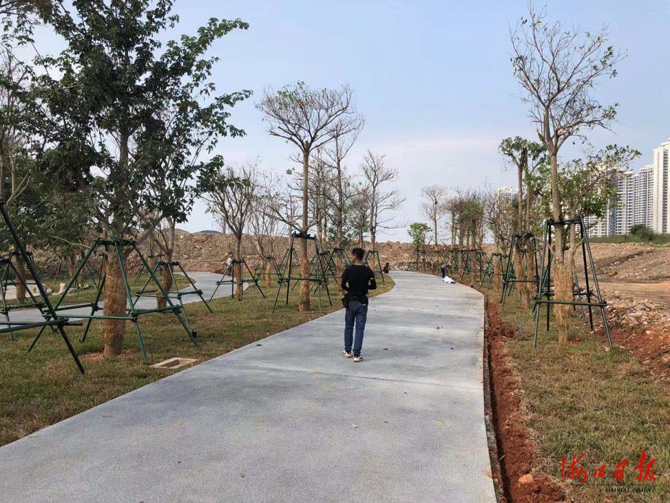 為了提升景觀,施工方還在三道旁種植了椰子樹、大葉欖仁、小葉欖仁等,在建設景觀綠化工程時,按照“鄉土特色,簡約大方”的原則,因地制宜廣泛種植了椰子樹、大葉油草,適度種植了三角梅。