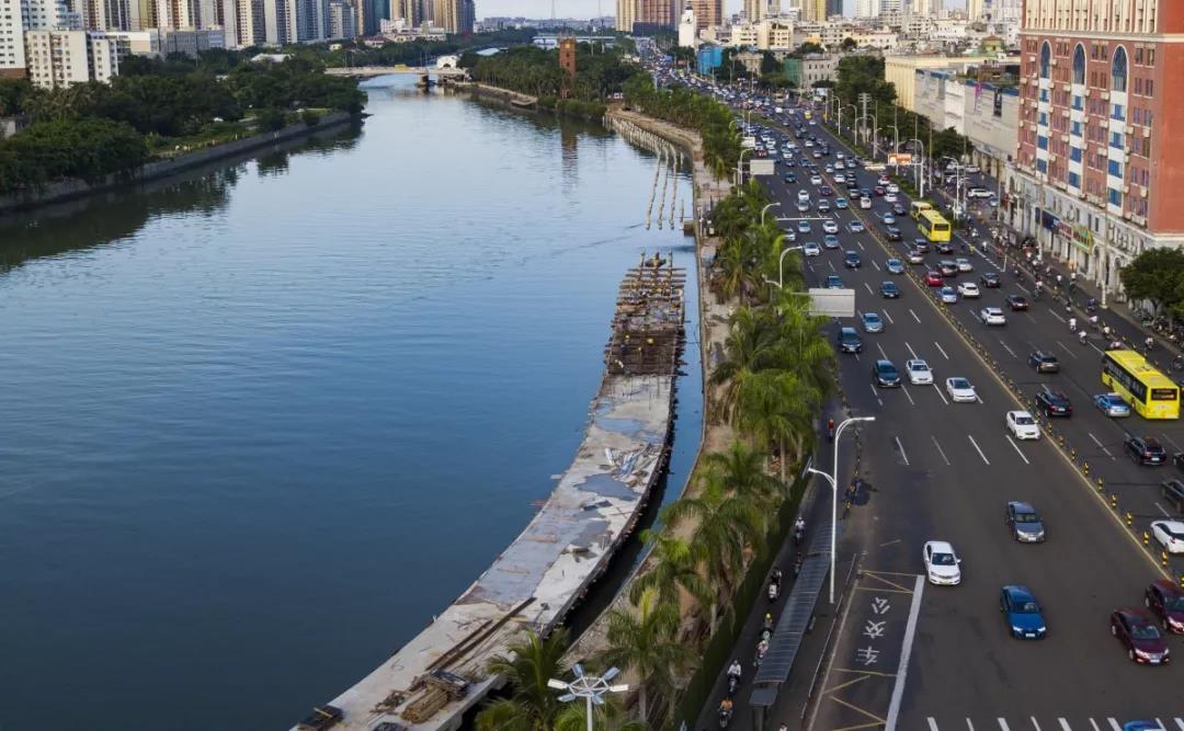 作為海口灣暢通工程的首個重要節點,今年國慶節前,6.644公里長的一期示范段計劃實現三道貫通,12月31日前完成景觀部分。目前,項目在加快沖刺三道貫通的同時,逐步推進實施兩岸防洪堤綜合整治,包含兩岸道路交通整治、兩岸景觀環境改造、兩岸生態環境整治、兩岸配套設施建設及城市界面整治等,著力打造海口高品質濱海濱水公共休閑空間。