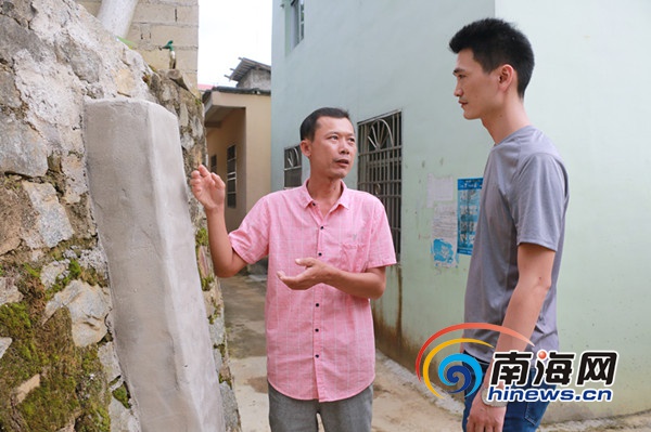 五指山市住建局工作人員與什會村黨支部書記、村委會主任王國友交流農(nóng)戶無害化廁所改造細節(jié)。南海網(wǎng)記者 葉子青 攝