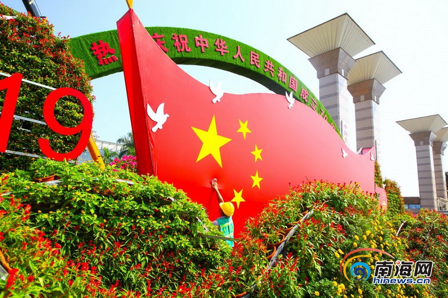 南海網、南海網客戶端海口9月21日消息(海報集團全媒體中心記者 張茂)9月21日,工人在海口市濱江路擺放鮮花,喜迎國慶節。隨著國慶節的臨近,海口國興大道、濱江路、龍昆南路等主干道陸續擺放鮮花和懸掛五星紅旗,為節日營造出喜慶祥和的氣氛。