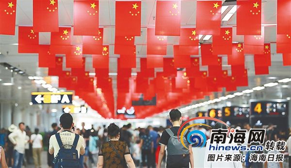 10月2日,海口美蘭國際機場滿眼都是國旗,為國慶營造熱烈喜慶、歡樂祥和的氛圍。海南日報記者 李英挺 攝