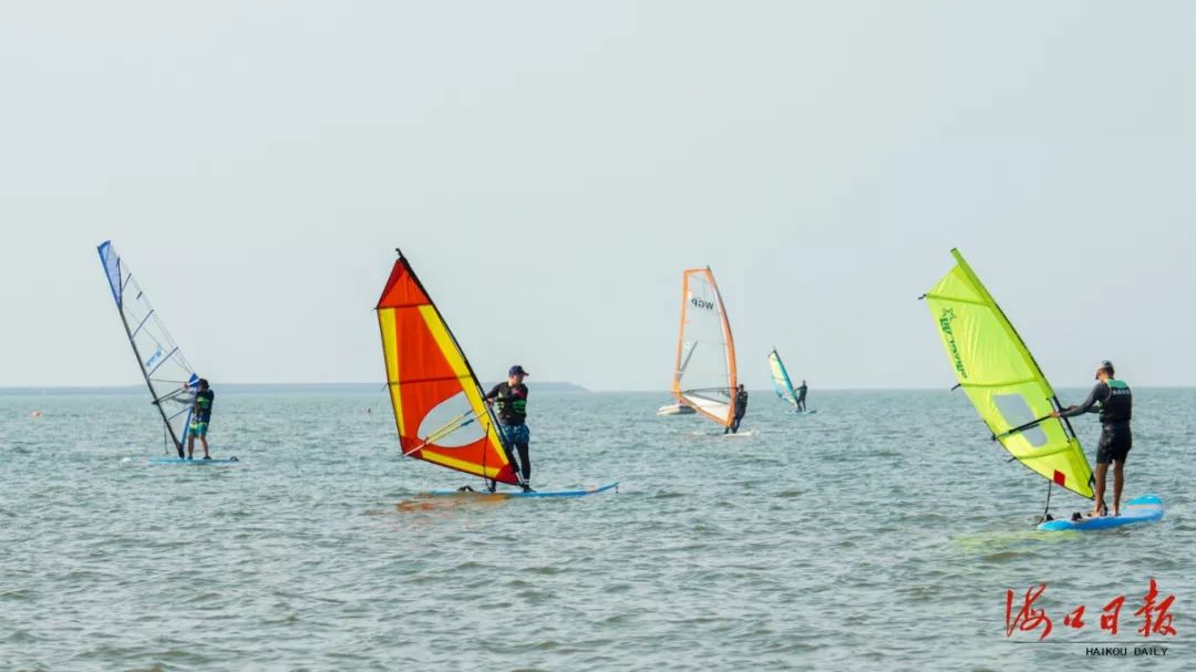 國慶假期,市民游客在海口國家帆船帆板基地體驗海上沖浪運動。??谌請笥浾?石中華 攝