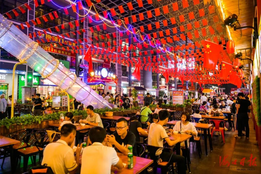 10月5日晚,尋嘗里美俗夜市人氣火爆,各種特色小吃吸引眾多食客前來品嘗。??谌請笠娏曈浾?康登淋 攝