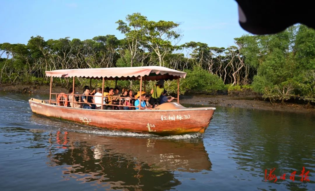 國慶假期,風光旖旎的東寨港紅樹林自然保護區吸引眾多游客前來游玩,呼吸清新空氣。??谌請笥浾?張俊其 攝