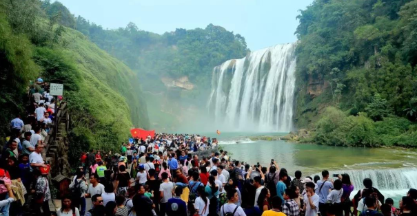 作為貴州旅游名片之一的黃果樹景區,國慶長假期間接待游客199664人次,綜合收入達3296.43萬元。其中,黃金周第三天黃果樹景區迎來旅游高峰,上午11:40,接待游客數量便接近3.5萬人,趨于飽和。