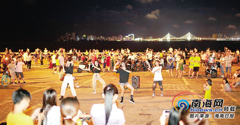 在海口灣,舞者們在動感的節拍中輪番上演集體舞、雙人舞、個人秀。海南日報記者 張杰 攝