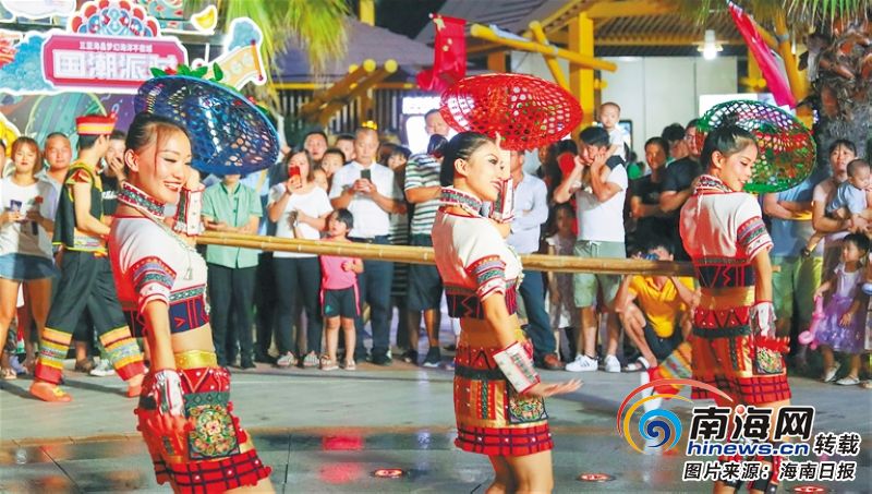 旅游綜合體漸成海南旅游“新引力”。圖為三亞海昌夢幻海洋不夜城內,演員在表演竹竿舞。 通訊員 王媛媛 攝