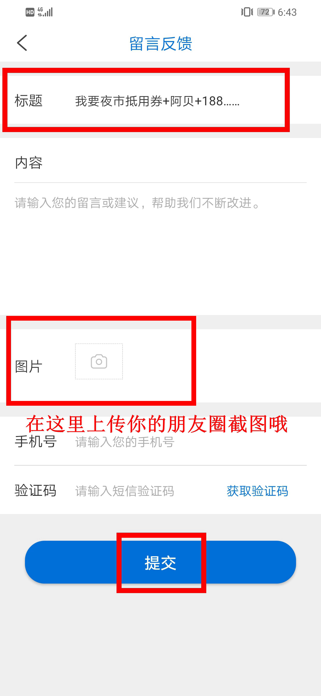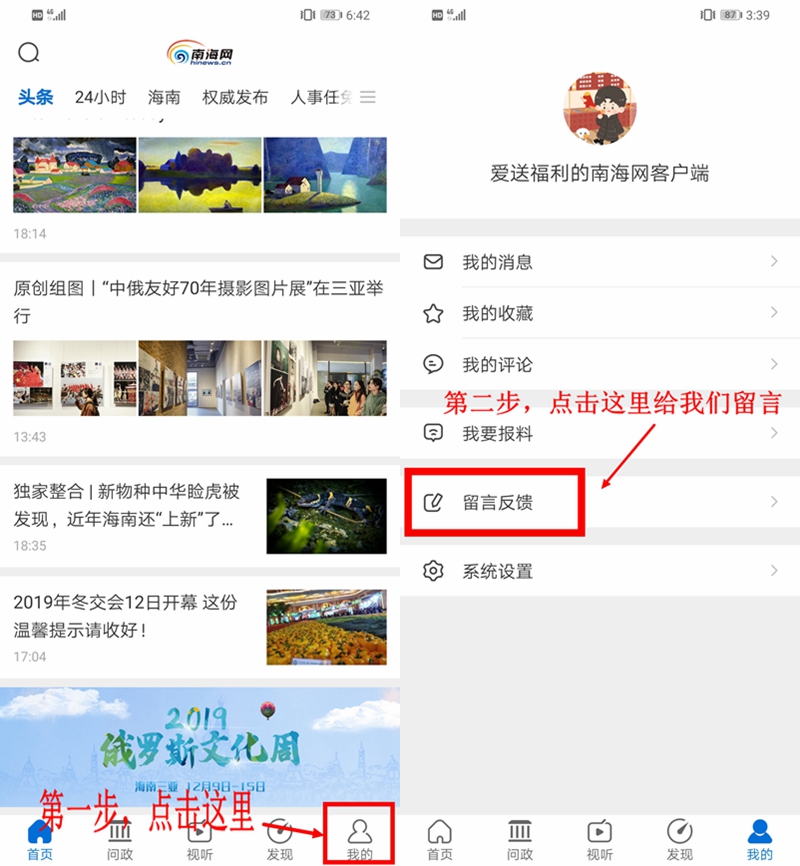 第二步:打開南海網(wǎng)客戶端,點擊右上角,進入留言反饋頁面填寫:“我要夜市抵用券+姓名+電話”,并將朋友圈分享截圖上傳,提交后即可成功參與活動!