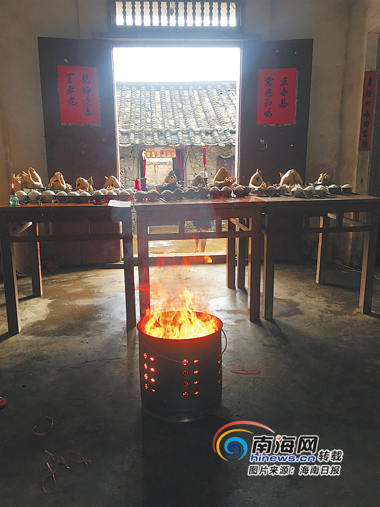 12月22日,冬至。海口市三門坡鎮(zhèn)石嶺村吳家正在祭祖。 吳恒剛 攝
