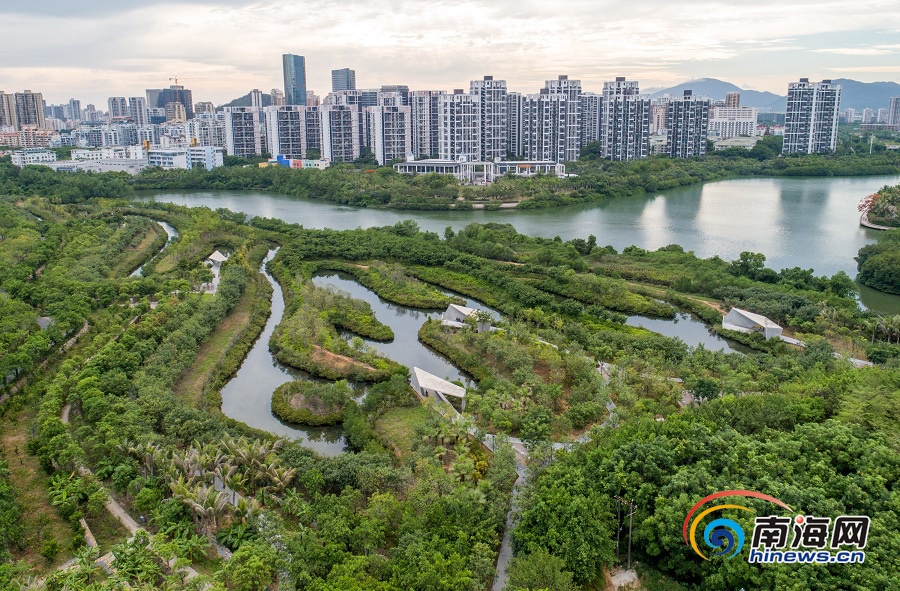 2019年06月25日三亞 三亞紅樹林生態(tài)修復(fù)工程榮膺國際獎項(xiàng) 被評為2019AZ最佳景觀獎 6月25日,低空俯瞰三亞市春光路紅樹林生態(tài)公園,昔日的硬質(zhì)河岸已經(jīng)成為今天郁郁蔥蔥的紅樹林生態(tài)公園。