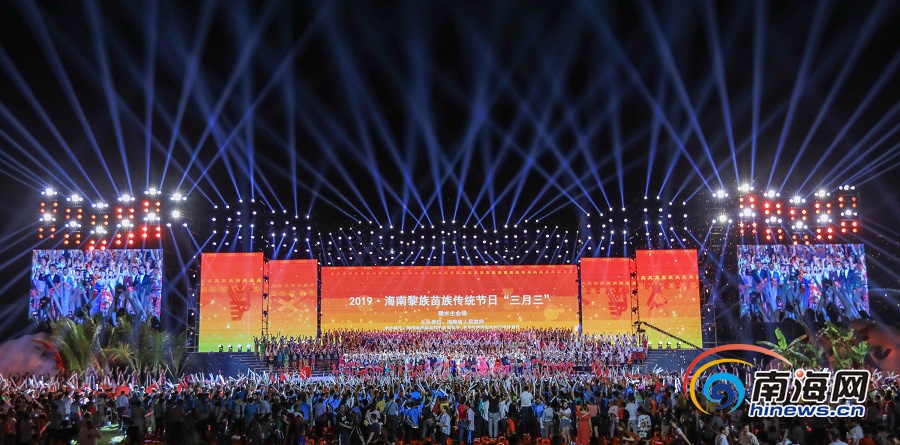 2019年04月07日陵水 海南“三月三”節(jié)慶活動開幕 4月7日晚,2019年海南黎族苗族傳統(tǒng)節(jié)日“三月三”主會場開幕式暨主題文藝晚會在陵水黎族自治縣舉行。