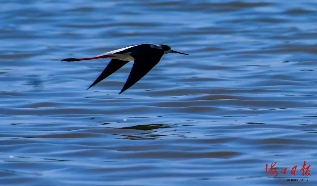 黑翅長腳鷸。海口日報記者 康登淋 攝