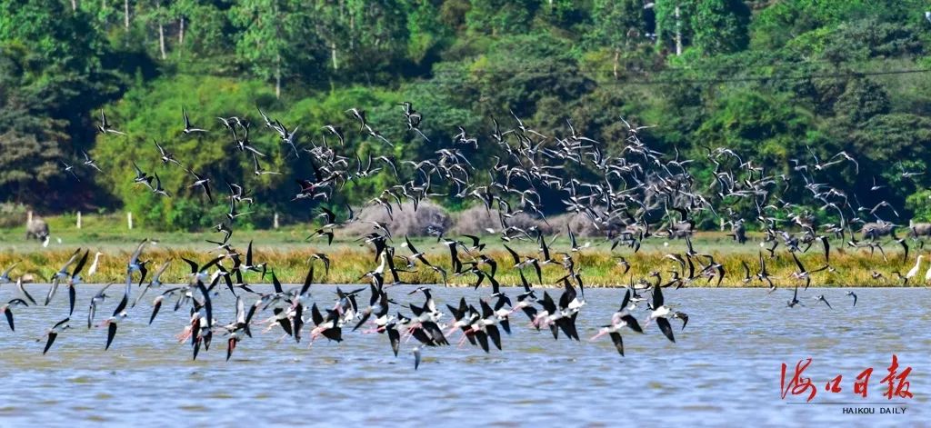 夏塘濕地群鳥高飛。海口日報記者 康登淋 攝